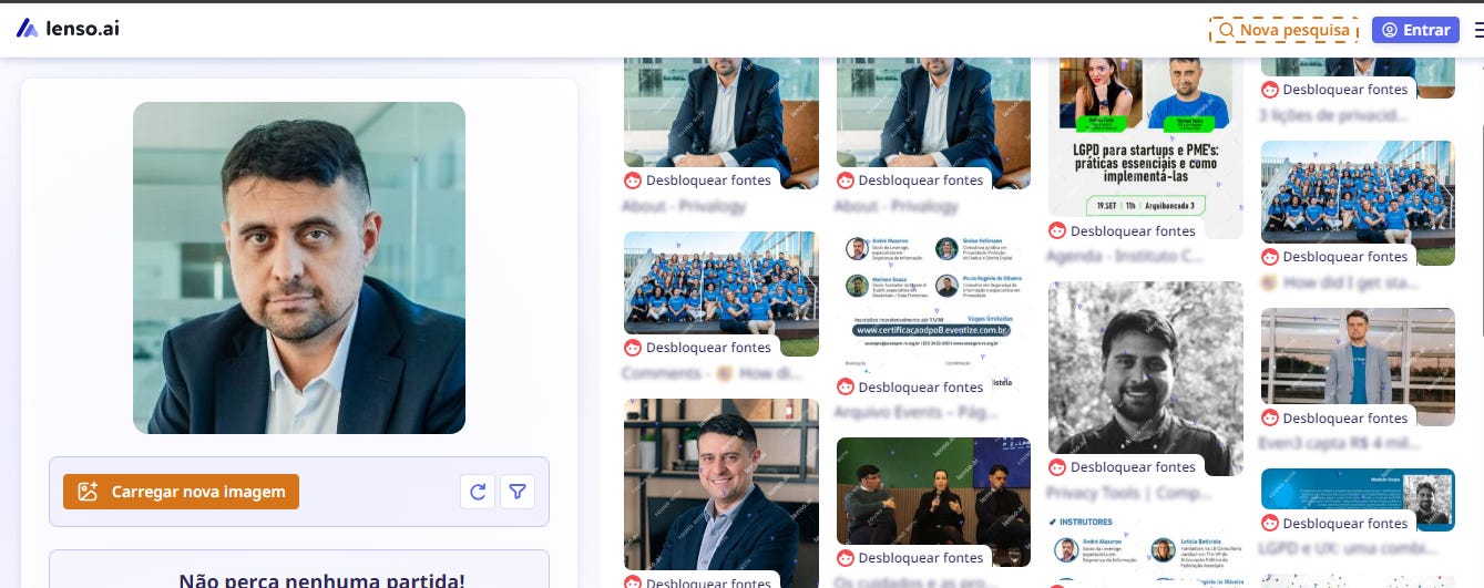 PimEyes is a dedicated facial recognition search engine, often called the “Google of faces.” Unlike generic searches, which analyze the entire image, PimEyes focuses only on the face presented, generating much more precise results for finding photos of people. You upload your photo and it scours the public internet for images in which your face appears, even at different angles or contexts. Users report that PimEyes can unearth old photos from forgotten places. In fact, upon using the platform, many found photos from the past that they preferred to remove. The service is freemium (the search itself is free, but a subscription is required to see the site details). It is important to mention that PimEyes does not index closed social media networks (Facebook, Instagram, etc.) due to access restrictions, but it covers public pages. Although powerful, PimEyes is the target of ethical concerns: due to its ability to identify anyone, it has been criticized for potentially exposing sensitive images and threatening privacy. Use it consciously and take advantage of the opt-out option the site offers, if you wish for your data to be excluded.