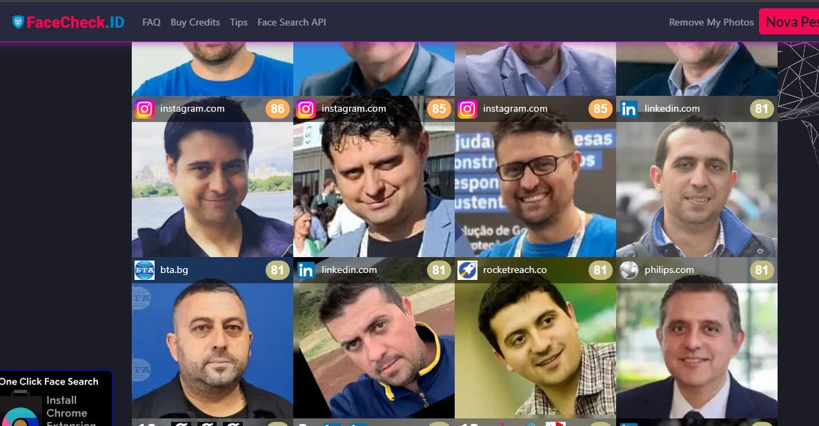 FaceCheck.ID is a specialized tool for finding social media profiles based on a facial photo. Just upload a photo of yourself and the service searches for matches on platforms like Instagram, Facebook, Twitter, among others. Its differential is precisely focusing where other searches do not reach: social media. Since Google and TinEye do not adequately index social profile photos, FaceCheck uses advanced facial recognition to link your image to existing accounts. For example, if someone is using your photo on a fake dating profile or if you yourself have different accounts with the same photo, this tool should reveal these occurrences. According to the developers, FaceCheck is one of the most advanced “search by face” engines publicly available, using neural networks for matching precision. It also provides security-focused resources, such as photo removal requests and an API for automated searches. Although it is a paid service for complete results, it is possible to perform some free test searches after registration.