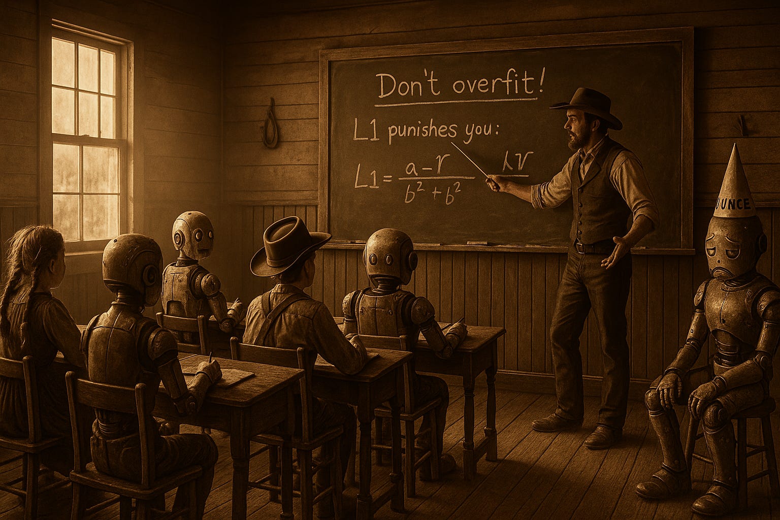 Imagine you're training an AI model like a student in a classroom. This student learns from various examples, but some of them are wrong or shouldn't be there at all. To prevent the student from fixating on these problematic examples, the teacher introduces a rule called L1 regularization, it penalizes the student each time they try to rely too much on any one detail. Over time, the student learns to focus on what truly matters.